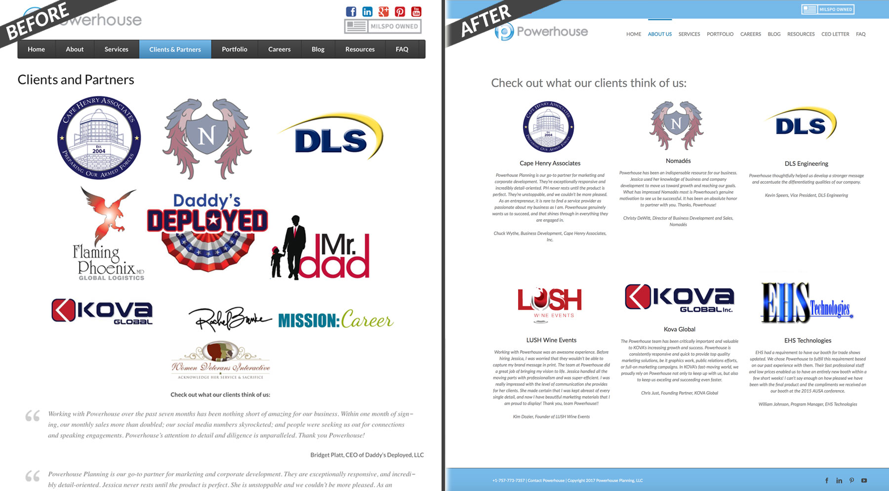 “We do a ton of work in external communication. We provide website design and development day after day for our clients. This past year we decided it was time to focus on us, too, and we rebranded our website. It’s incredibly important to keep things fresh, and we’re pretty happy with the before and after proof of our work we did for our own company.”